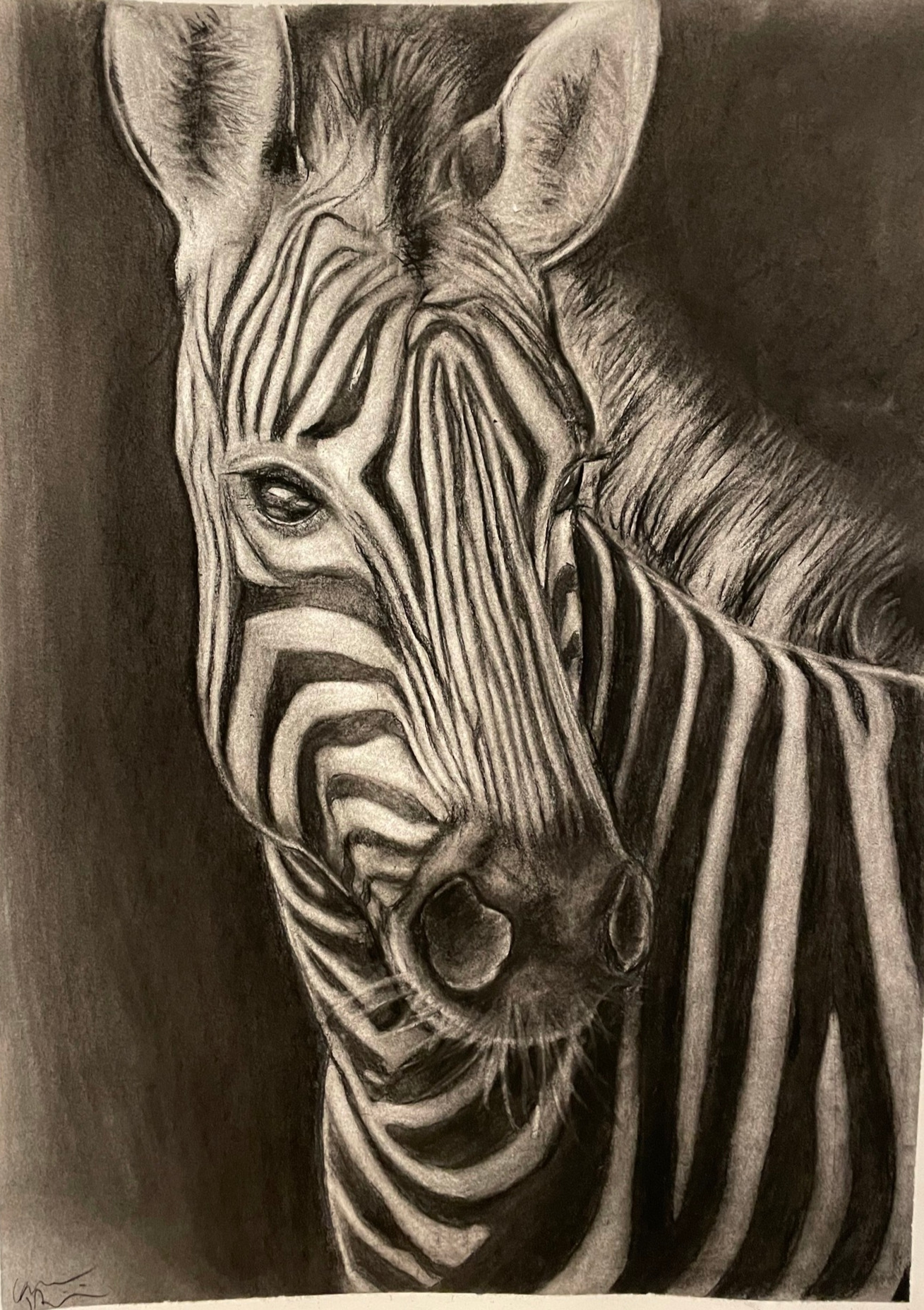 During early 2021, Keeya, a female zebra under our care, unfortunately passed. Having cared for her for nearly 3 years, I was heavily hit by her death, and wanted to not only work through my emotions, but also memorialize her for my fellow keepers and keeper aides. In the days following, I worked to produce the portrait below, ultimately donating it to the barn where she lived.