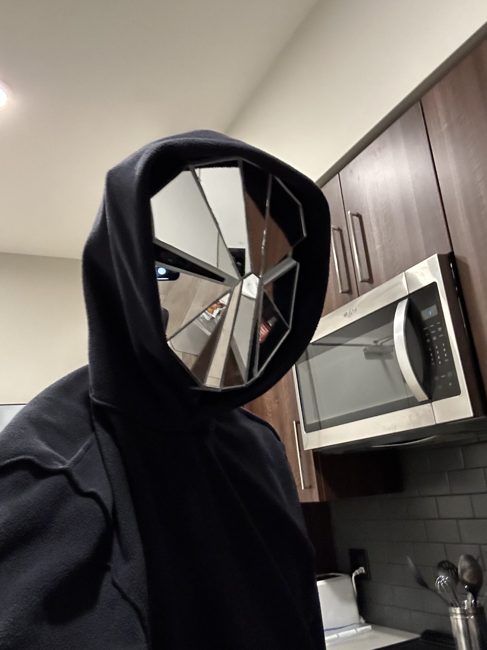 Long having been a fan of the band Muse, I’ve always enjoyed their concert production value and intricate costume pieces. Specifically, I’ve loved their integration of technology and art to create visually stunning outfits for performance. In the past, I’ve created a bluetooth version of Matt Bellamy’s RGB glasses, but I wanted to create something a bit more ambitious upon the release of their then-latest album, “Will of the People.” Throughout all of their music videos and concerts, they utilized a mirrored mask as a core theme, and I attempted to create a practical version to bring to one of their shows.